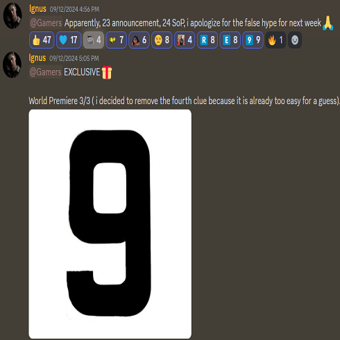 بعدها صرح المسرب Lunatic Ignus و هذه المرة في تطبيق الديسكورد أن حدث بلايستيشن القادم هو في الحقيقة State of Play (SoP) و لكن سيكون ضخما جدا على عكس الحلقات السابقة ، و عليكم أيها اللاعبون أن تركزوا على المحتوى وليس إسم الحدث لأن المحتوى هو الأهم بالنسبة لنا كلاعبين ، و أضاف أنه سنرى الكشف الأولي لبعض الألعاب الجديدة “World Premiere” لكنه ليس واثقا جدا من هذا الكلام.