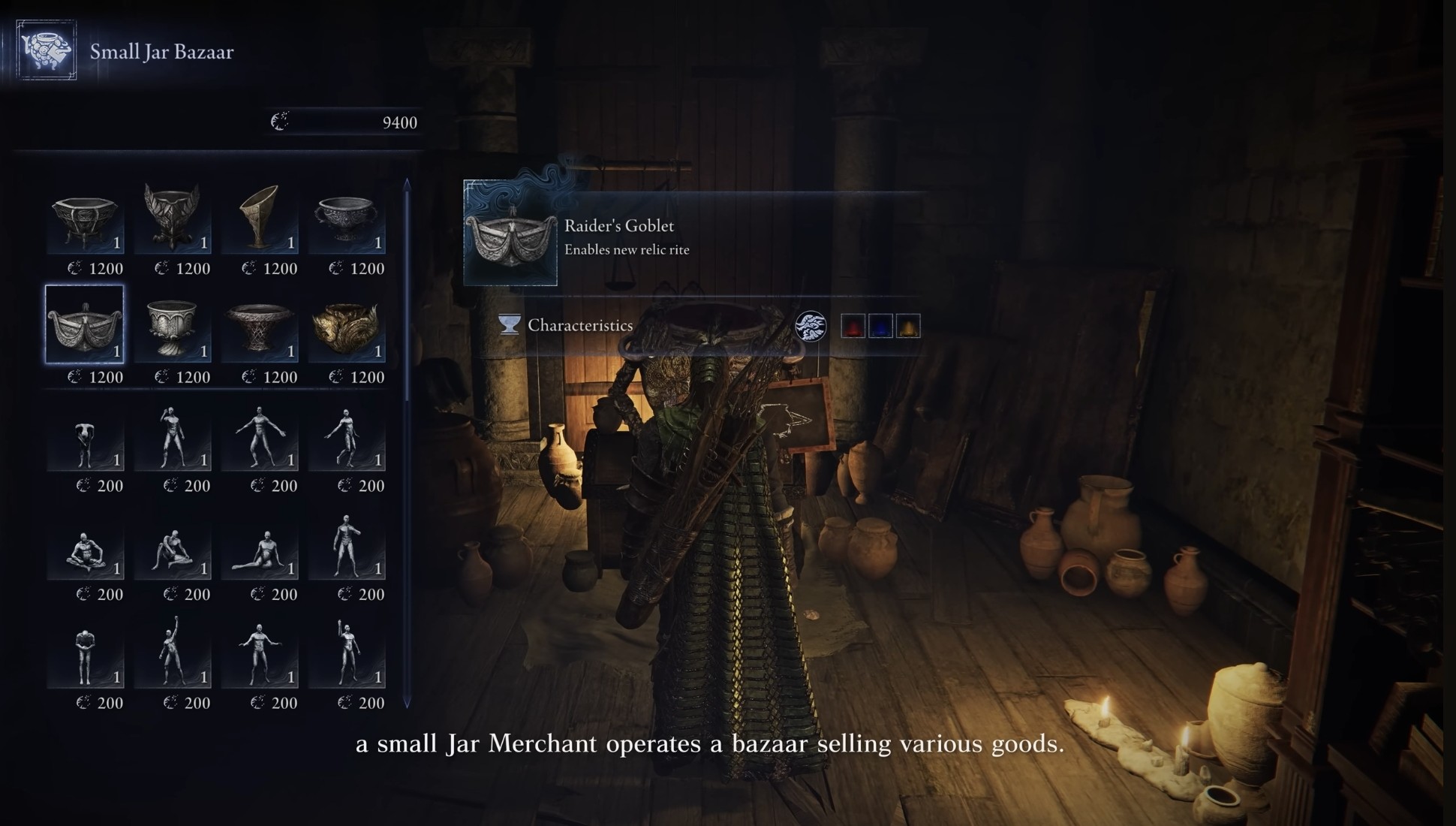 يوجد تاجر صغير داخل الغرفة الخلفية يدير سوقًا لبيع الأدوات بإستخدام عملة ميرك المكتسبة من المعارك.