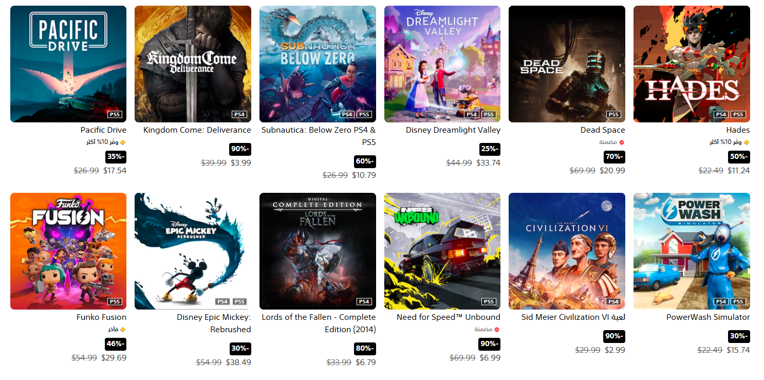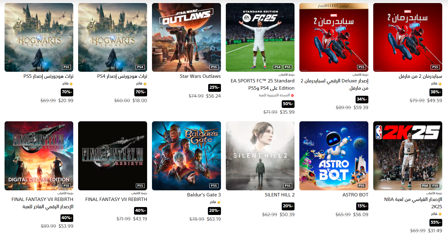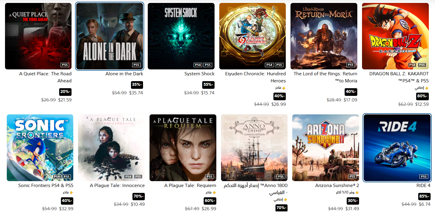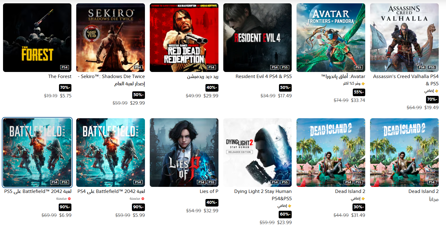 تخفيضات لمختلف الألعاب الرقمية PS4 و PS5 و حتى ألعاب الواقع الإفتراضي PSVR / PSVR2 أهمها: