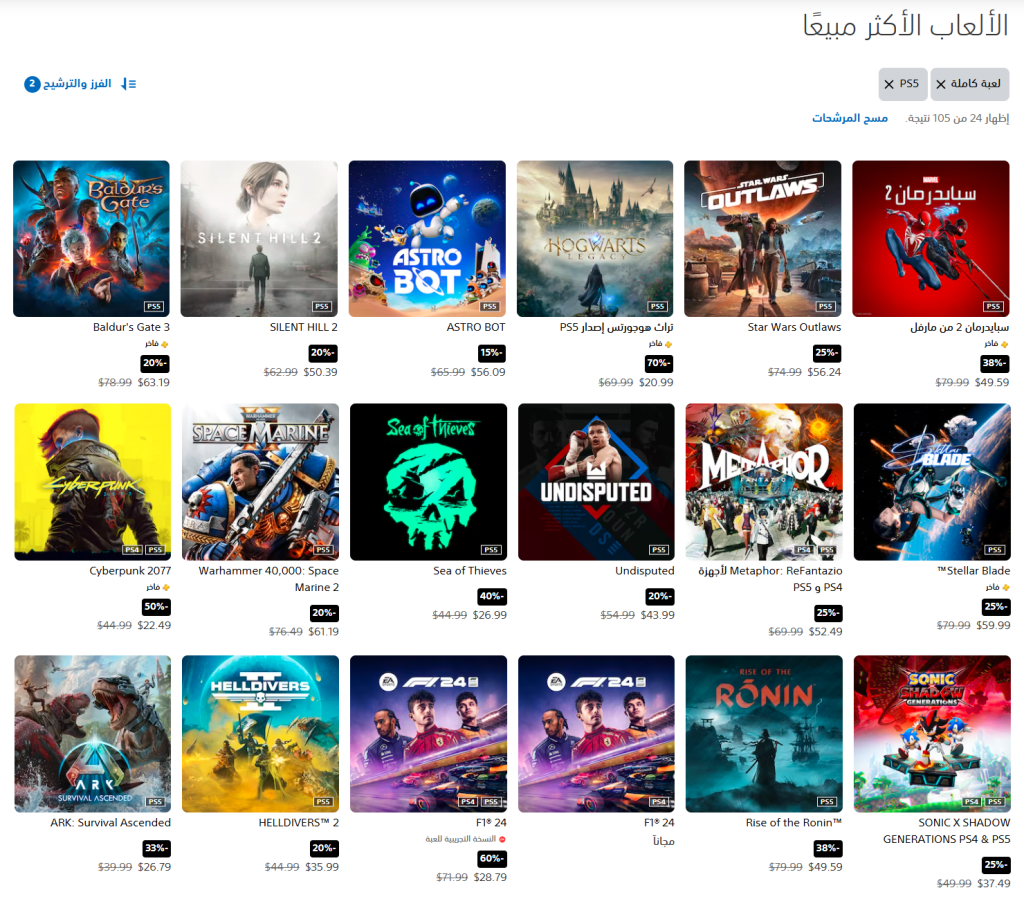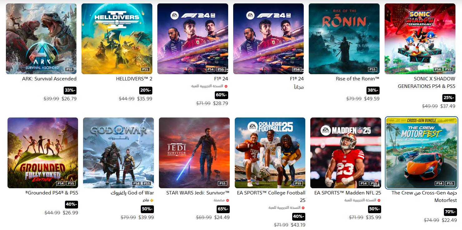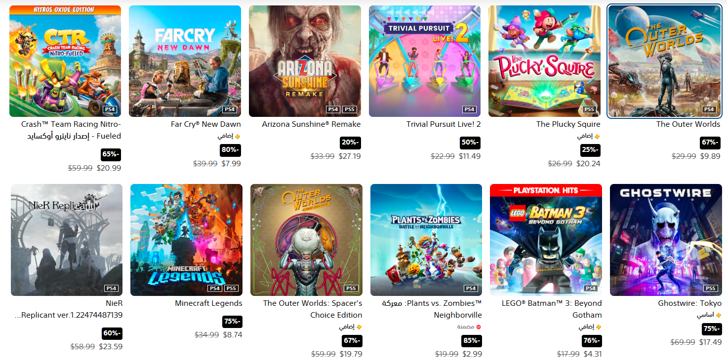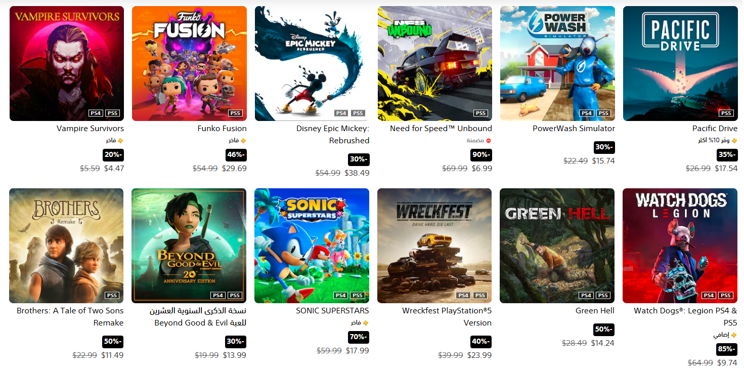 تخفيضات لمختلف الألعاب الرقمية PS4 و PS5 و حتى ألعاب الواقع الإفتراضي PSVR / PSVR2 أهمها: