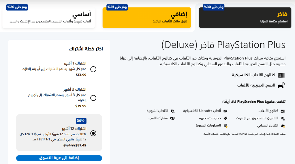– تخفيض 30% في الإشتراك السنوي لفئة (فاخر/Deluxe) ليصل سعره 87.49$.