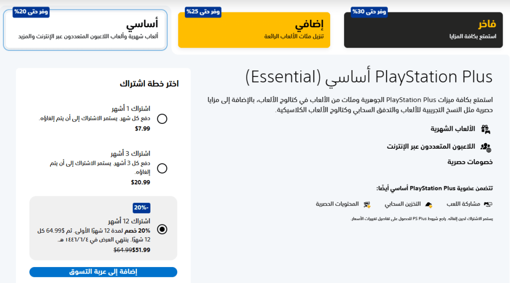 – تخفيض 20% في الإشتراك السنوي لفئة (أساسي/Essential) ليصل سعره 51.99$.