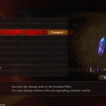 الكاميرا ليست أداة قتال فقط، النظر من خلال العدسة قد يكشف عن باب مخفي أو جسم غير مرئي للعين المجردة، كذلك جزء أساسي لمتابعة سير القصة الجانبية بحيث عليك إلتقاط أو رؤية بعض الأطياف الغير معادية “Specters“.