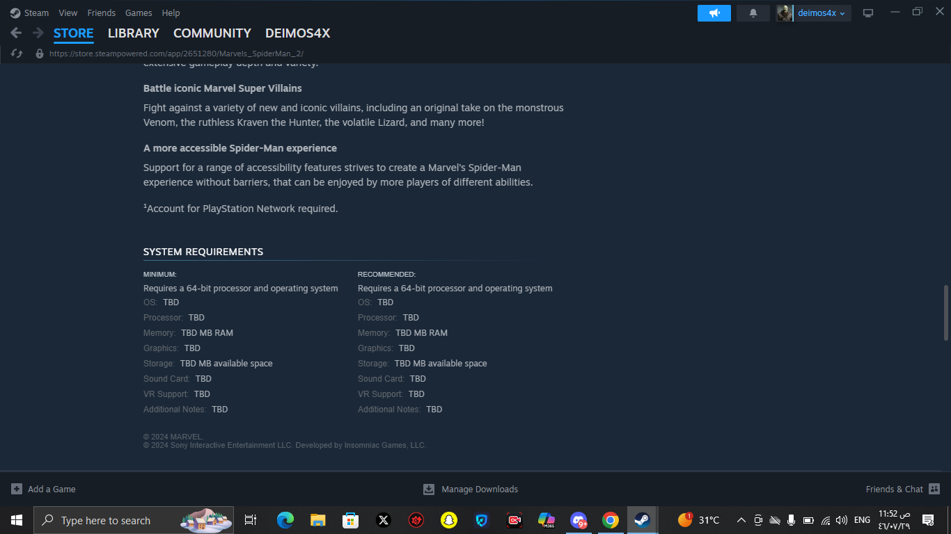 أعلنت سوني عن نسخة الحاسب الشخصي (PC) من لعبة Marvel’s Spider-Man 2 بشكل مبكر مقارنة بالإصدارات السابقة، مما أثار إستياء عدد كبير من جماهير PlayStation الذين يخشون تسريع إصدار الألعاب الحصرية للحاسب.