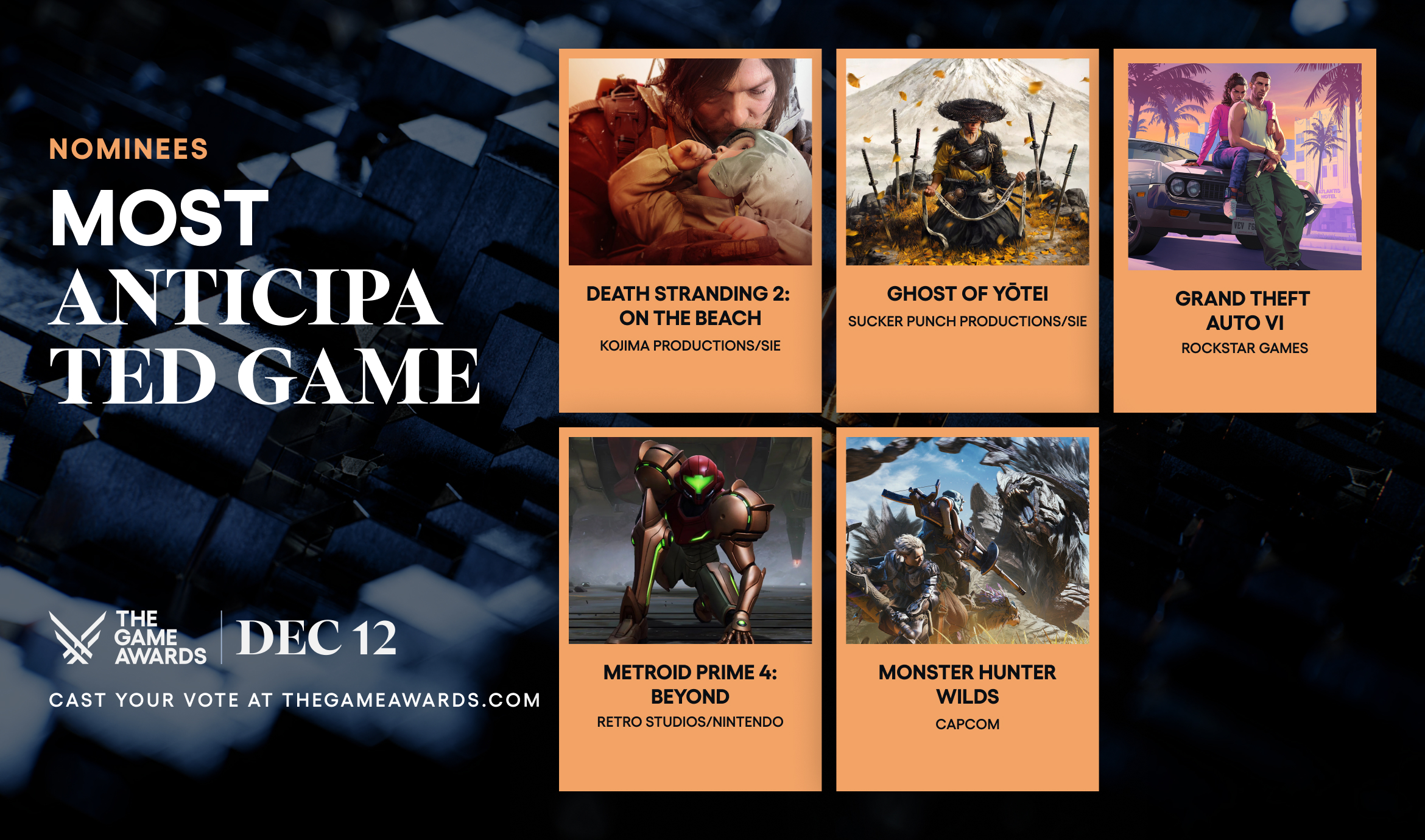 الألعاب المرشحة لجائزة اللعبة الأكثر إنتظارًا في حفل جوائز لعبة السنة 2024 The Game Awards هم: