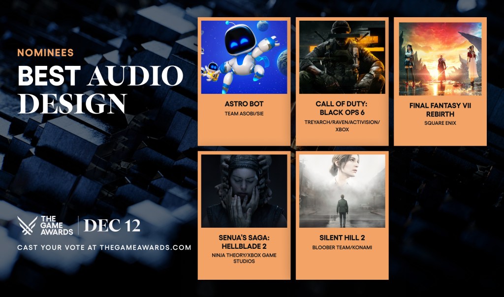 الألعاب المرشحة لجائزة أفضل تصميم صوتي في حفل جوائز لعبة السنة 2024 The Game Awards هم:
