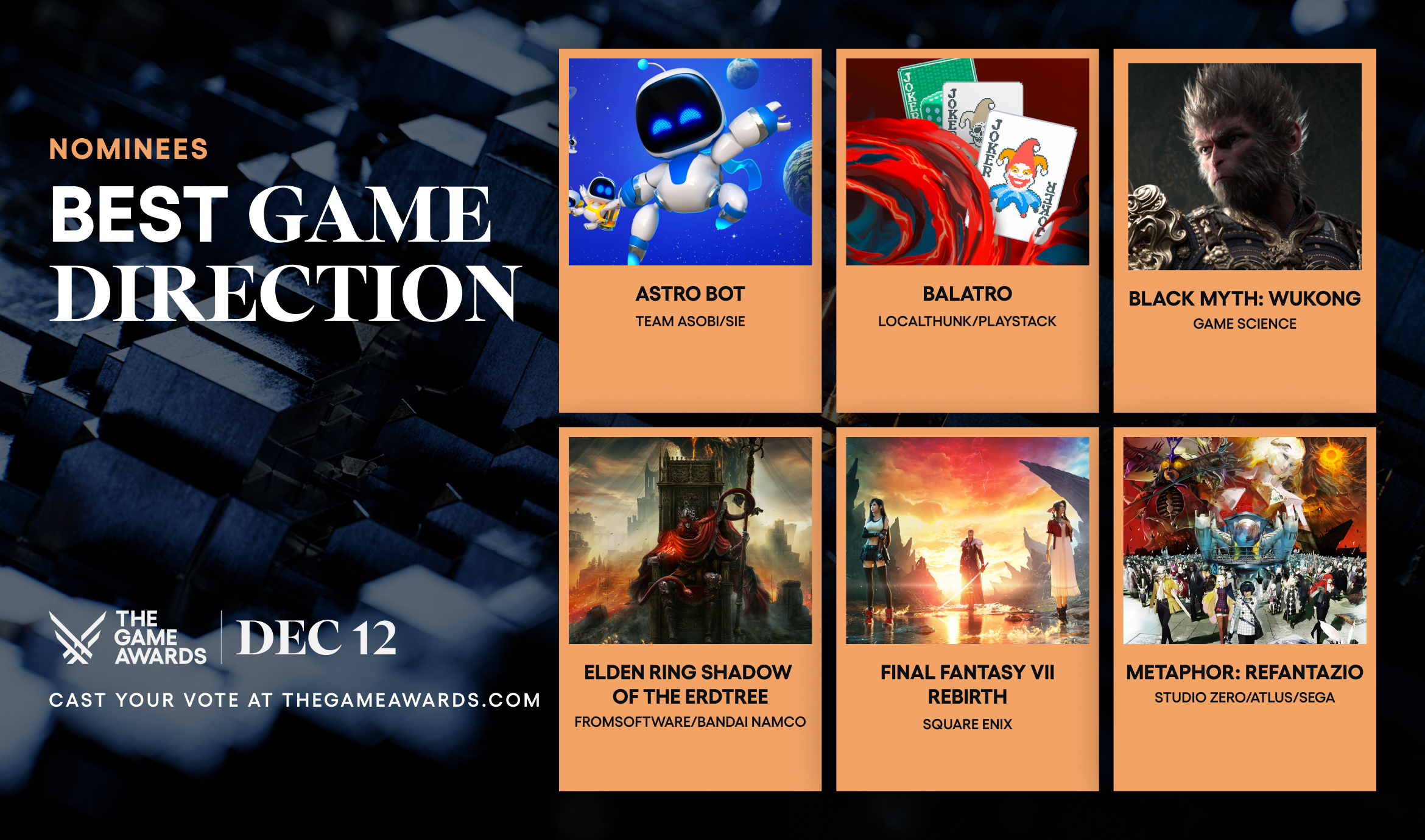 المرشحون لجائزة أفضل إخراج للعبة في حفل جوائز لعبة السنة 2024 The Game Awards هم: