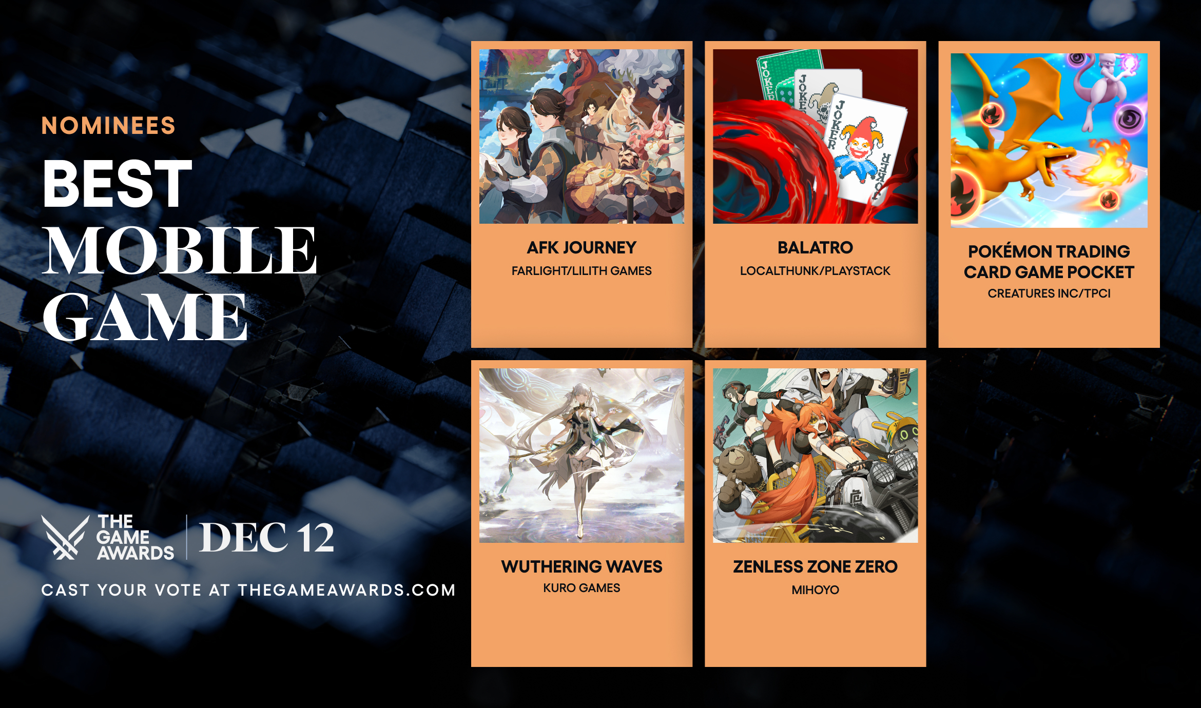 الألعاب المرشحة لجائزة أفضل لعبة جوّال في حفل جوائز لعبة السنة 2024 The Game Awards هم: